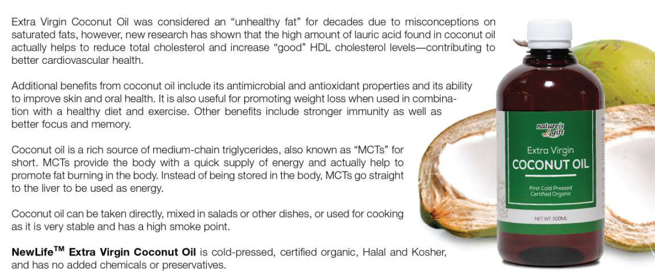- For many years, Virgin Coconut Oil was perceived to be a high in cholesterol, saturated fat that increases the risk of heart diseases. However, intensive researches have proven that NOT all saturated fats are harmful. Unlike long chain fatty acids such as found in animal saturated fat, the medium chain fatty acid in Virgin Coconut Oil raises metabolism, boosts immune system and is easily digested. It is first cold-pressed, unrefined, unbleached and non-deodorized, thus packed with natural antioxidants and containing antimicrobial, antifungal, and antibacterial properties, whilst retaining its delightful flavour and aroma.
