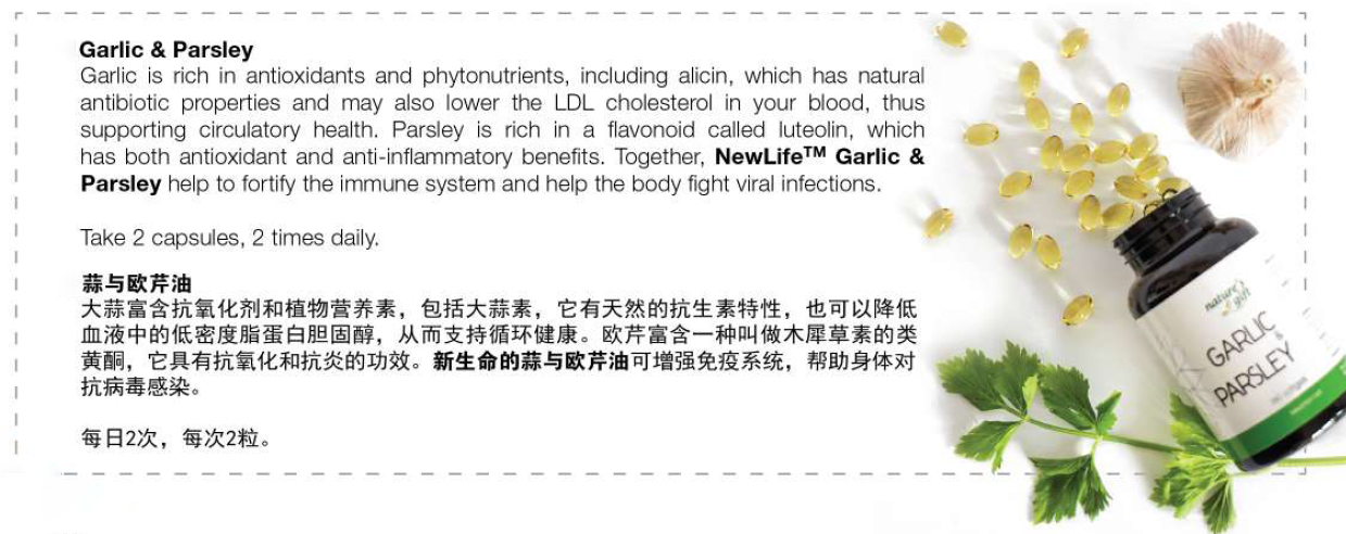 Garlic & Parsley Oil is my immunity super booster. Every time when I feel like I am about to catch a cold or cough. I will take 2 capsules of Garlic & Parsley Oil together with 2 tablets of C Complex.