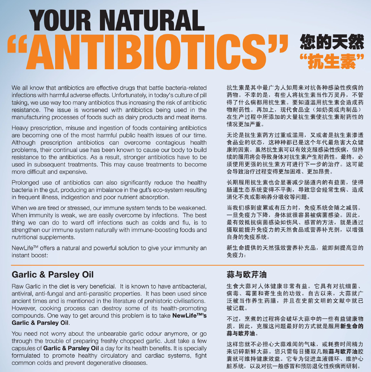 Early this year, my gynaecologist removed one small polyp from my vagina. He gave me strong antibiotics to take 3 times a day for 1 week to prevent infection. Instead of taking antibiotics, I took 2 capsules of Garlic & Parsley Oil thrice a day as substitute. After 3 days, the wound healed completely. No more stains and no infection encountered.
