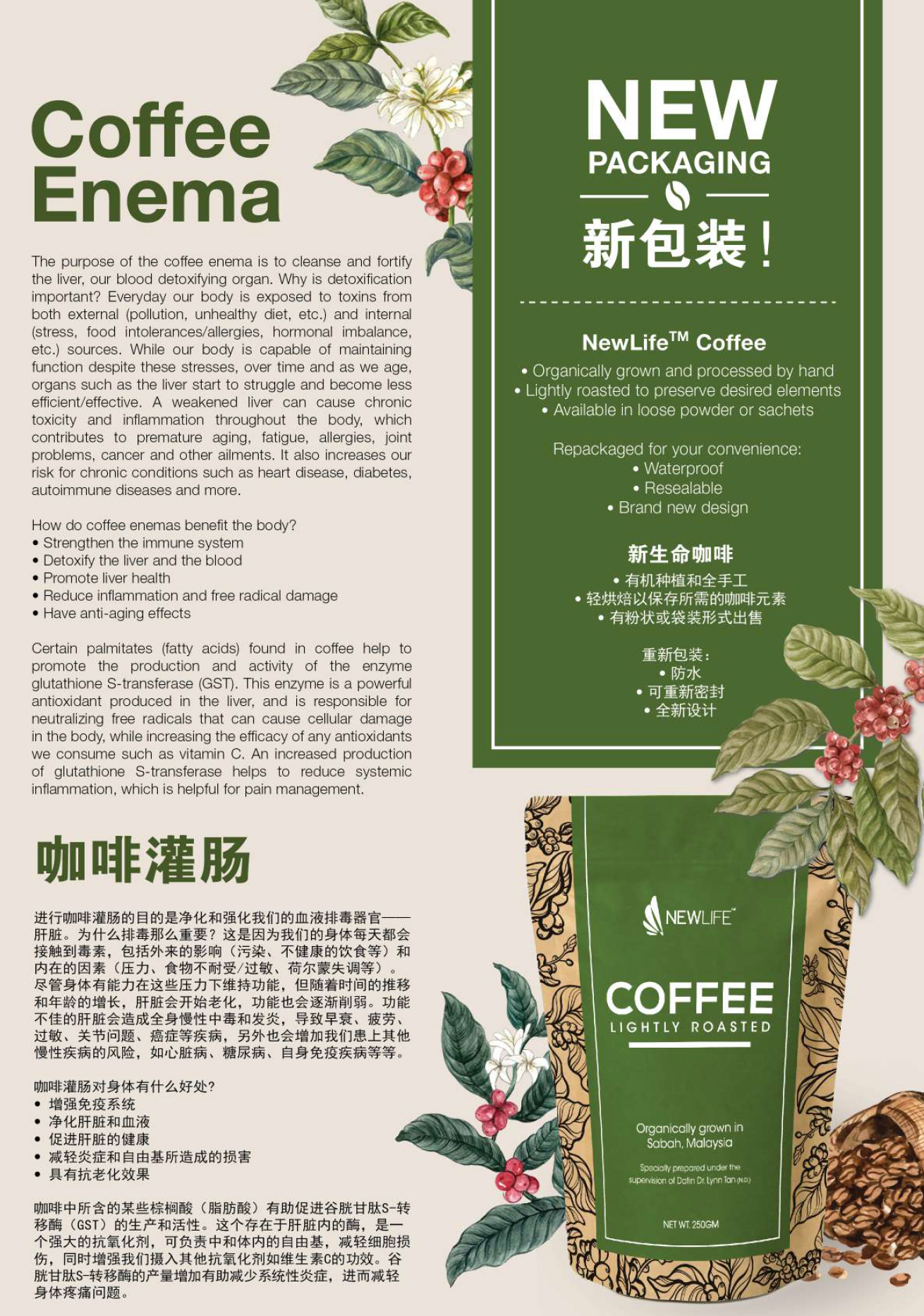 I’ve been using Newlife coffee for my monthly enema sessions for the past 5 years. Yes there are other coffee brands that specialises on enema but I choose Newlife because the coffee is procured locally. Local coffee for my local body 😁
